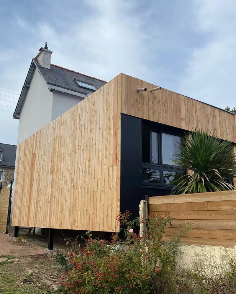 Ce projet d’extension, situé en zone urbaine dense, a été conçu pour s’intégrer harmonieusement à l’existant tout en apportant une touche de modernité. L’habillage de façade alterne des lames de cèdre naturel et des panneaux James Hardie, jouant sur les textures et les teintes pour créer un rendu à la fois sobre, contemporain et durable.