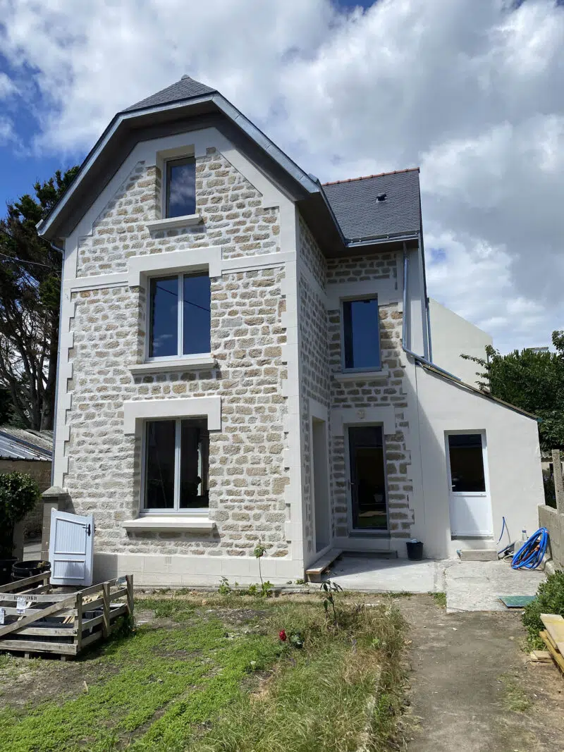 Dans le cadre de ce projet de rénovation énergétique à Gâvres, notre équipe est intervenue sur plusieurs aspects clés de l’enveloppe du bâtiment afin d’améliorer ses performances thermiques tout en préservant son esthétique.